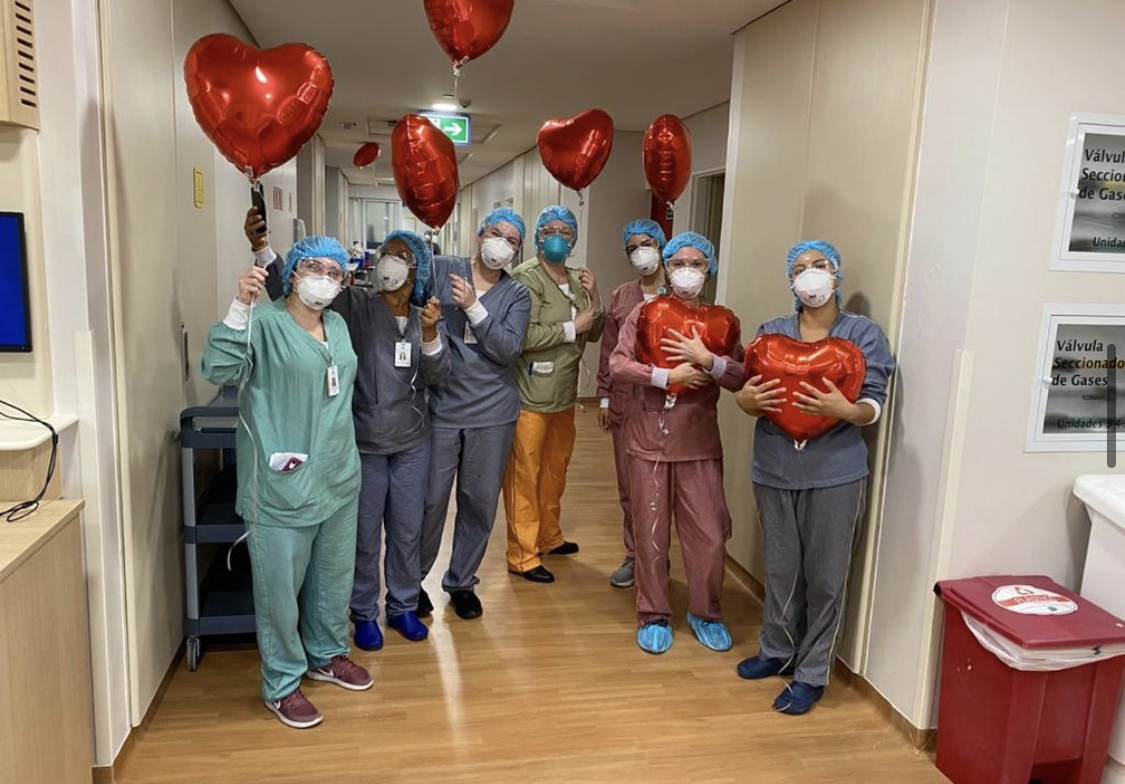 No Dia das Mães, por exemplo, a equipe promoveu chamadas de vídeo com familiares dos pacientes, além de encher o hospital com balões que foram devidamente higienizados com peróxido de hidrogênio antes de ser entregue.