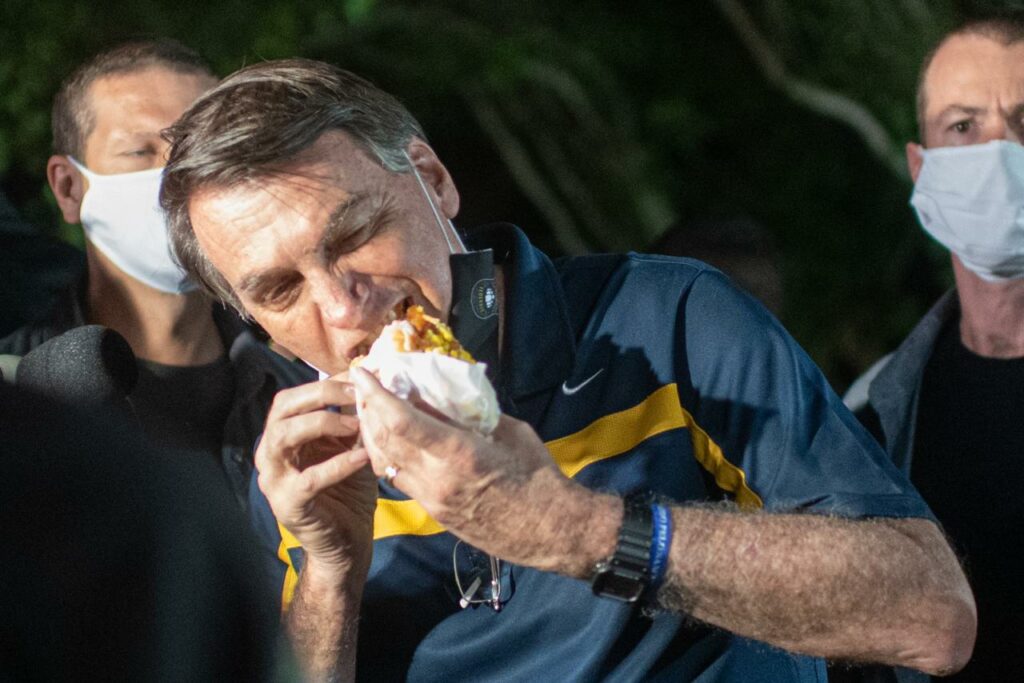 Em seguida, parou para lanchar na Quadra 104 Norte. Enquanto comia cachorro-quente e bebia Coca-cola, ouviu protestos novamente. “Genocida” e “fascista” foram os gritos mais recorrentes. O presidente também escutou manifestações positivas como: “Mito”.
