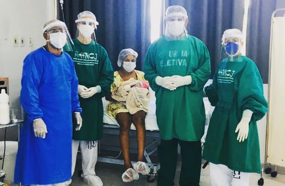 Após cinco horas de trabalho de parto, uma jovem de 19 anos, diagnosticada com Covid-19, teve o filho, que nasceu saudável.