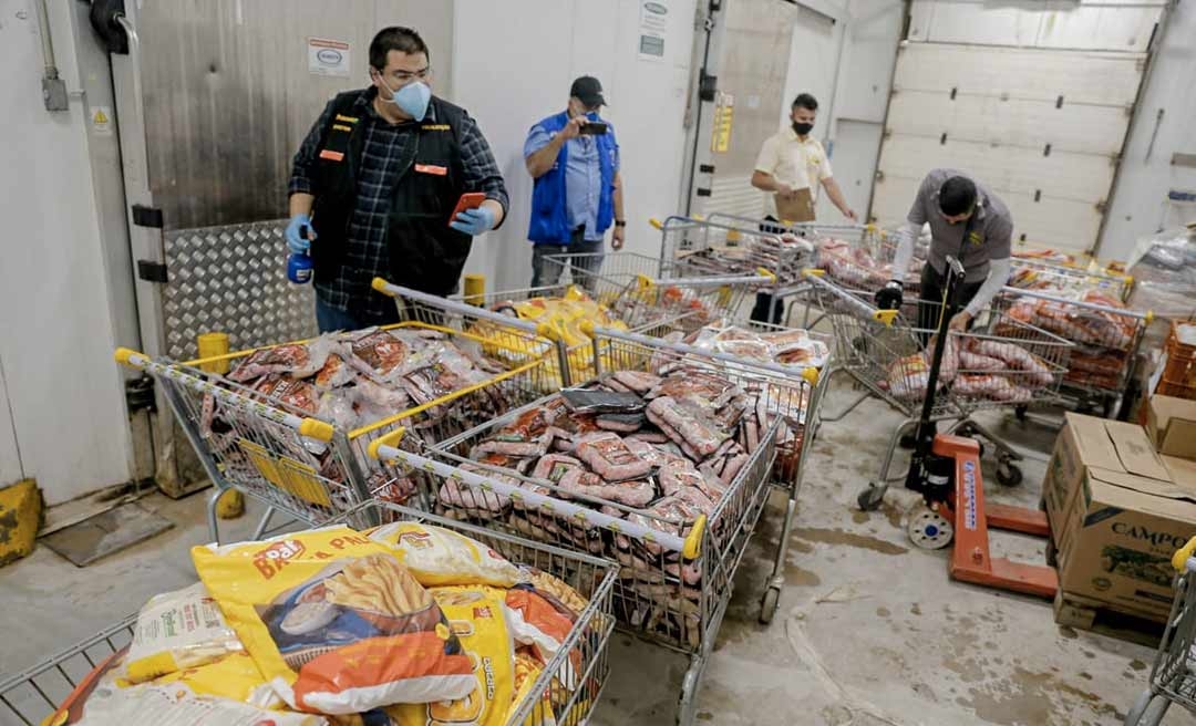 O Procon e a Vigilância Sanitária apresentaram o resultado da fiscalização realizada nesta segunda-feira (8) no Supermercado Mineirão, rede do varejo e atacado localizada nas antigas instalações do Makro, na Via Verde, em Rio Branco. Foram apreendidos cerca de duas toneladas de produtos como frango, carne, linguiça, camarão, batata frita e pão de queijo que eram armazenados de forma inadequada em temperatura abaixo da recomendada e em condições inapropriadas para o consumo.