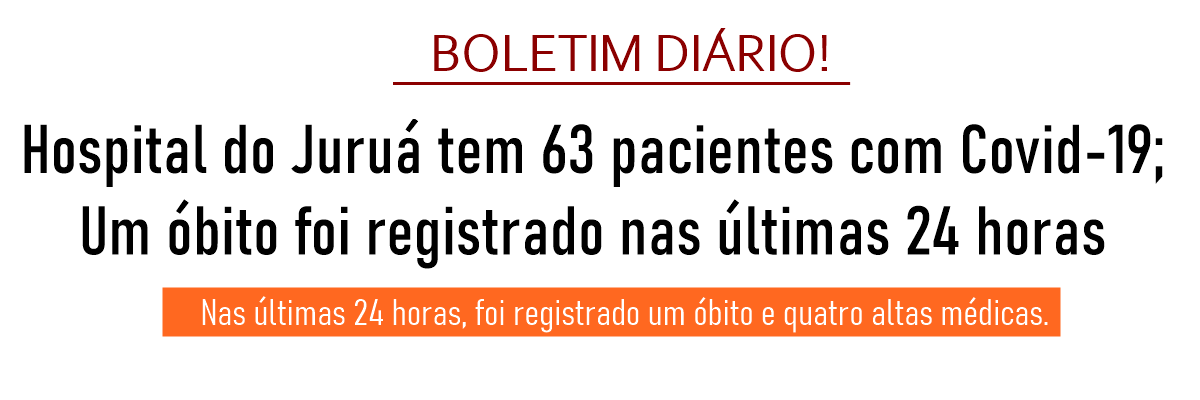 Segundo informações da direção do Hospital do Juruá, nesta quinta-feira, 23, a unidade está com 63 pacientes internados com Covid-19. Destes, 53 estão na enfermaria, sendo 48 no Hospital Campanha. Além disso, 10 pacientes estão internados na UTI Covid-19, e todos estão entubados.