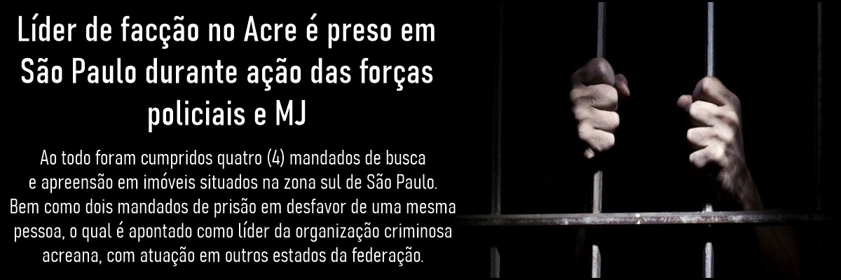 Na manhã desta sexta-feira, 24, uma operação foi desencadeada pela Polícia Civil do Estado do Acre, com apoio da Polícia Civil do Estado de São Paulo e do Ministério da Justiça, com o objetivo de desarticular célula de organização criminosa acreana que atuava na capital paulistana.