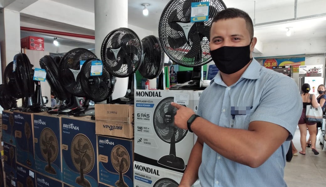 “A procura está bem alta por ar condicionado e ventiladores. Todos estão querendo amenizar o calor que está muito grande”, observa o vendedor Diego Lopes.