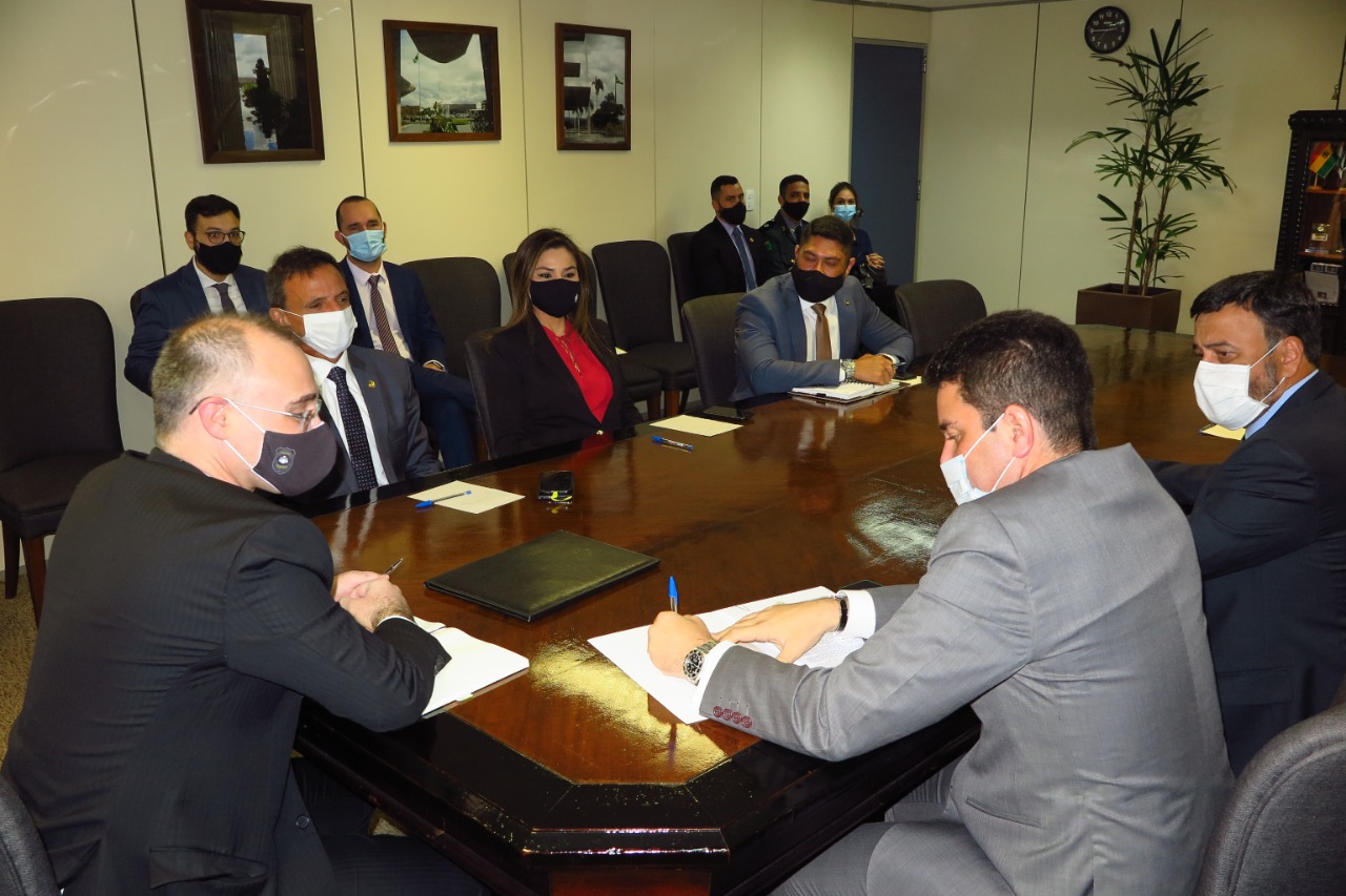 Gladson Cameli foi acompanhado do senador Márcio Bittar, autor do pedido da reunião, da deputada federal Jéssica Sales e do representante do Acre em Brasília, Ricardo França. O governador agradeceu ao ministro o apoio que o governo federal vem dando ao Estado do Acre, especialmente na área de segurança pública.