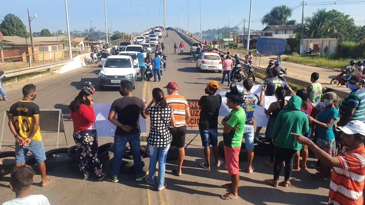 Exigindo o retorno dos serviços de pavimentação na rua do Loteamento Juca Terças, moradores do bairro da Baixa, em Cruzeiro do Sul, fecharam a ponte da União nesta sexta-feira, 28.