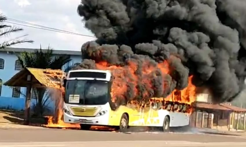 Um ônibus de transporte coletivo que faz a linha do bairro Vila Acre e Santa Maria em Rio Branco pegou fogo e ficou totalmente destruído na tarde desta segunda-feira (17). O fato aconteceu na parada final do bairro, próximo ao antigo Top 15, na Rodovia AC-40.