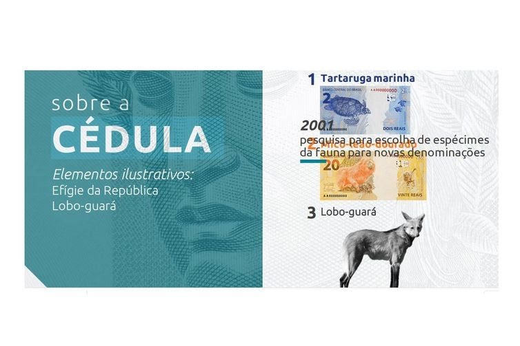 O lobo-guará foi escolhido em pesquisa realizada pelo BC em 2001 para eleger quais espécies da fauna brasileira deveriam ser estampadas nas cédulas do país. No site do BC, há mais informações sobre a nova cédula.