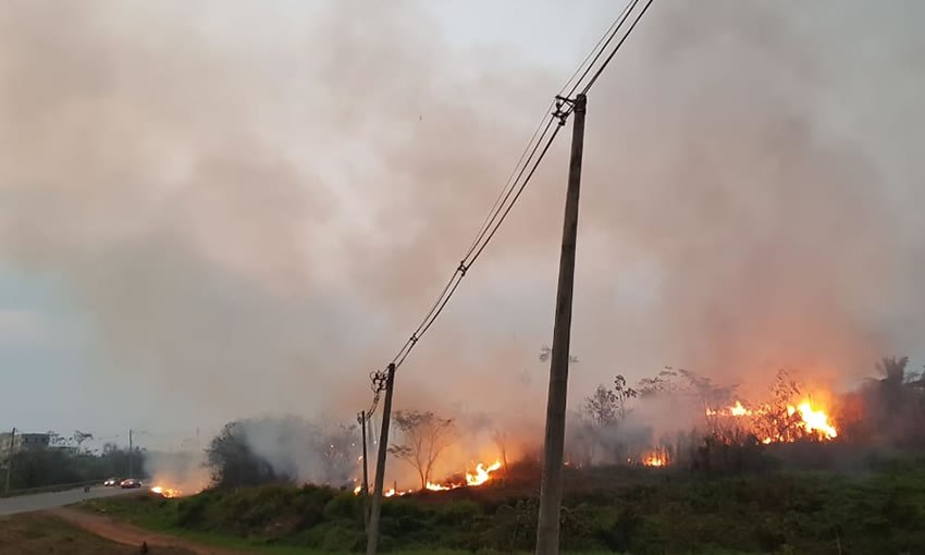 O índice de queimadas urbanas segue em alta na capital acreana. Na tarde deste sábado, 29, um incêndio de grandes proporções consumiu boa parte da vegetação presente nas proximidades da Via Verde, estrada que liga o Primeiro ao Segundo Distrito de Rio Branco. Neste período de estiagem, a localidade próxima da Terceira Ponte tem sido alvo constante de incêndios criminosos.