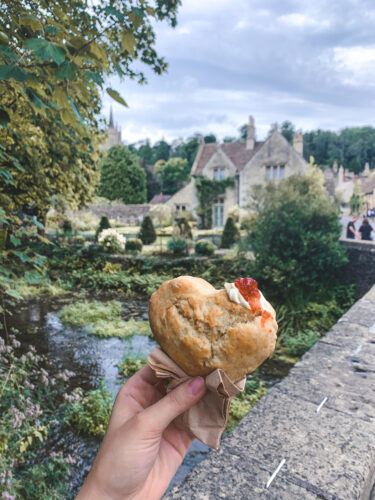 Além disso, depois de tantas fotos e andar por aí, a fome atacou haha e fomos em um café chamado the old stables, a comida de lá é muito boa, mas fique atento ao horário de funcionamento. Provei o quiche, um cappuccino e o scone (que aqui tem formato de coração). Tudo estava uma delícia! Scone é um doce muito típico aqui da inglaterra, ele tem uma textura quebradiça, entre um pão e um biscoito. Realmente não sei explicar a textura dele haha mas é muito gostoso! Ele é servido com geleia e creme.