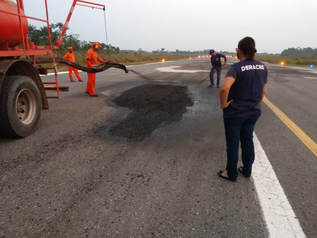 O governo do Acre, por meio do Departamento de Estradas de Rodagens (Deracre) e Secretaria de Estado de Infraestrutura (Seinfra), está realizando a manutenção da pista de pouso do aeroporto de Feijó e melhorando a estrutura física do terminal de passageiros.