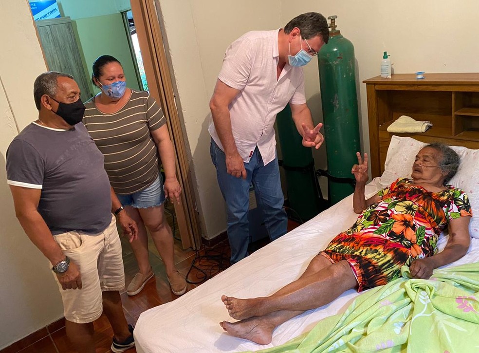 Para que a alta hospitalar de Gismalia fosse possível, a família precisou instalar um cilindro de oxigênio para a idosa. No sábado (12), Oscar foi buscá-la em Limeira e a festa pela recuperação, que tornou-se comum aos que superam a Covid-19 nas saídas de hospital, ocorreu em casa.