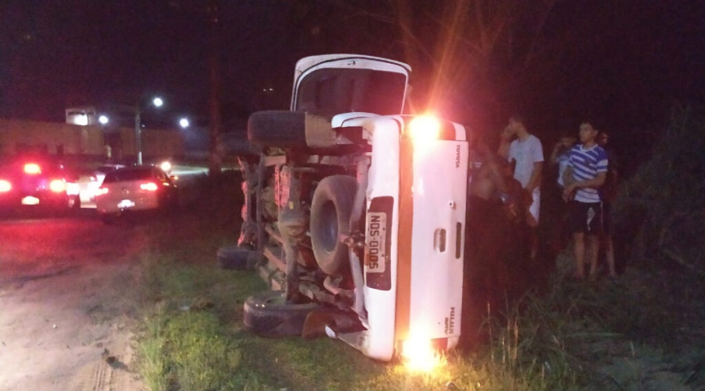Na noite deste domingo (27) por volta das 20h30 um veículo de cor branca tipo camionete trafegava pela pista nas proximidades do Hospital do Juruá, quando o motorista após a bifurcação que liga a estrada do Guajará (AM) a Cruzeiro do Sul sentido centro da cidade, tentou fazer uma manobra e acabou tombando durante a curva.