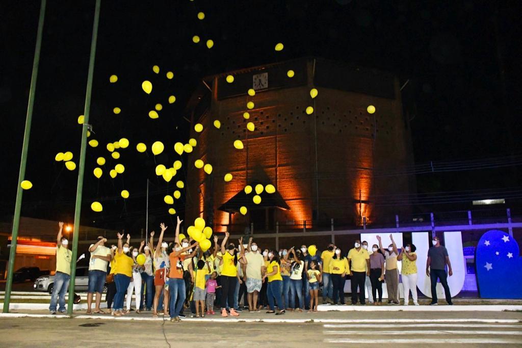 Setembro é o mês dedicado ao combate ao suicídio. Para reforçar a promoção da política pública de saúde, a prefeitura de Cruzeiro do Sul, através da Secretaria Municipal de Saúde, iniciaram nesta terça-feira, 1º, a Campanha ‘Setembro Amarelo’. O prefeito Clodoaldo Rodrigues, acompanhado da Secretária Municipal de Saúde Janaína Negreiros fizeram a abertura da campanha em um ato simbólico, onde junto com os servidores soltaram balões e acederam as luzes da Catedral, principal cartão postal da cidade, com a cor amarela.