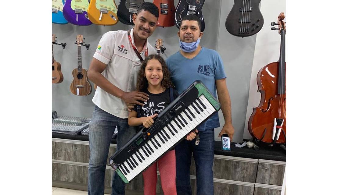 “Desde pequena ela sempre foi muito inteligente, pegando muito rápido as coisas. No final do ano passado o professor orientou que ela trocasse de instrumento, pois já tinha aprendido tudo no violão, foi quando ingressou na aula de teclado. No começo do ano ela colocou no coração dela que queria comprar o teclado, com o próprio dinheiro”, contou a mãe.