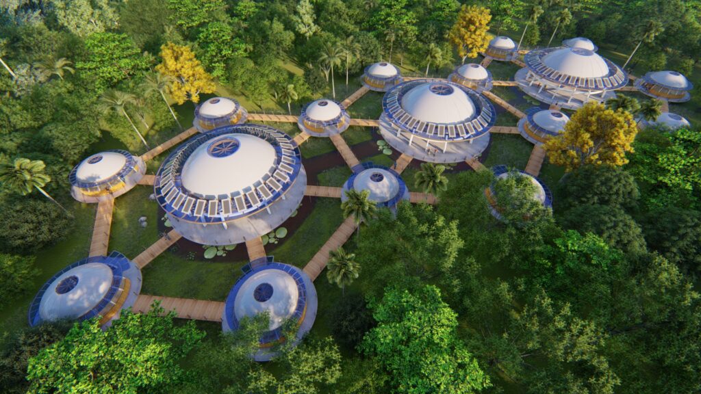 Visto de cima, o projeto mais se parece com módulos das colônias espaciais de algum planeta inóspito imaginado apenas por cineastas da estirpe de James Cameron e o seu ultrarrealista Avatar. Mas o designer das novas escolas indígenas do Acre – cujas primeiras unidades começam a ser construídas em 2021 -, além de futurista, leva em consideração uma questão crucial neste século, a autossuficiência energética com proteção ao meio ambiente.