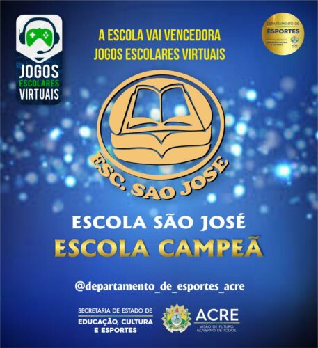 A escola São José foi a campeã dos jogos escolares virtuais de 2020. A escola Militar Dom Pedro II, em Rio Branco, ficou em segundo lugar.