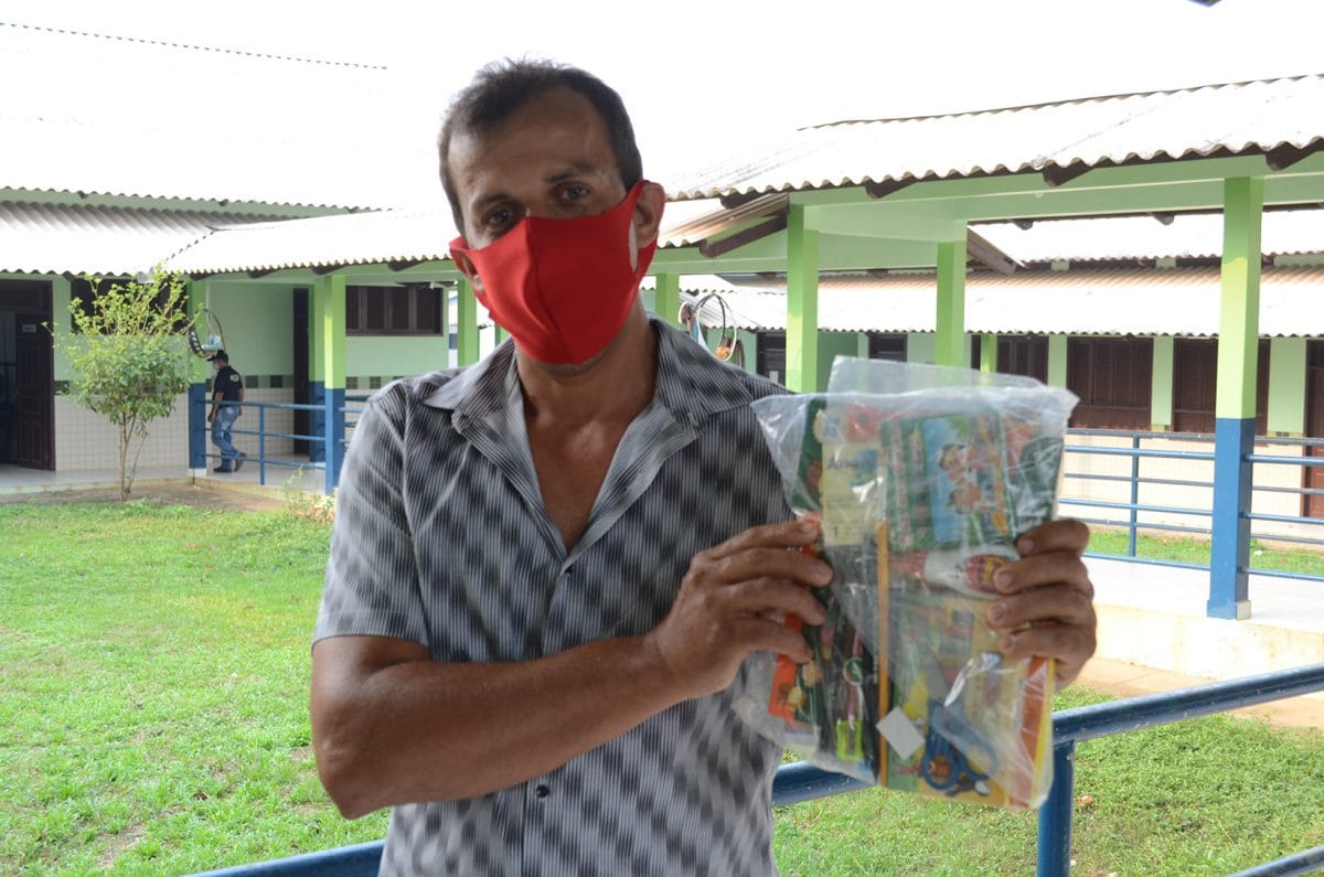 Os kits escolares também foram distribuídos na Escola Nova Esperança, dentro do Projeto de Assentamento Alcoobras, a 60 quilômetros de Rio Branco, ainda dentro de Capixaba. O projeto é destinado pelo Incra para reforma agrária, mas a escola, que atende a 230 estudantes, também serve às famílias do polo Zaqueu Machado, outra comunidade de pequenos agricultores, que somada ao Alcoobras, compõem um conjunto de 400 famílias agroextrativistas.