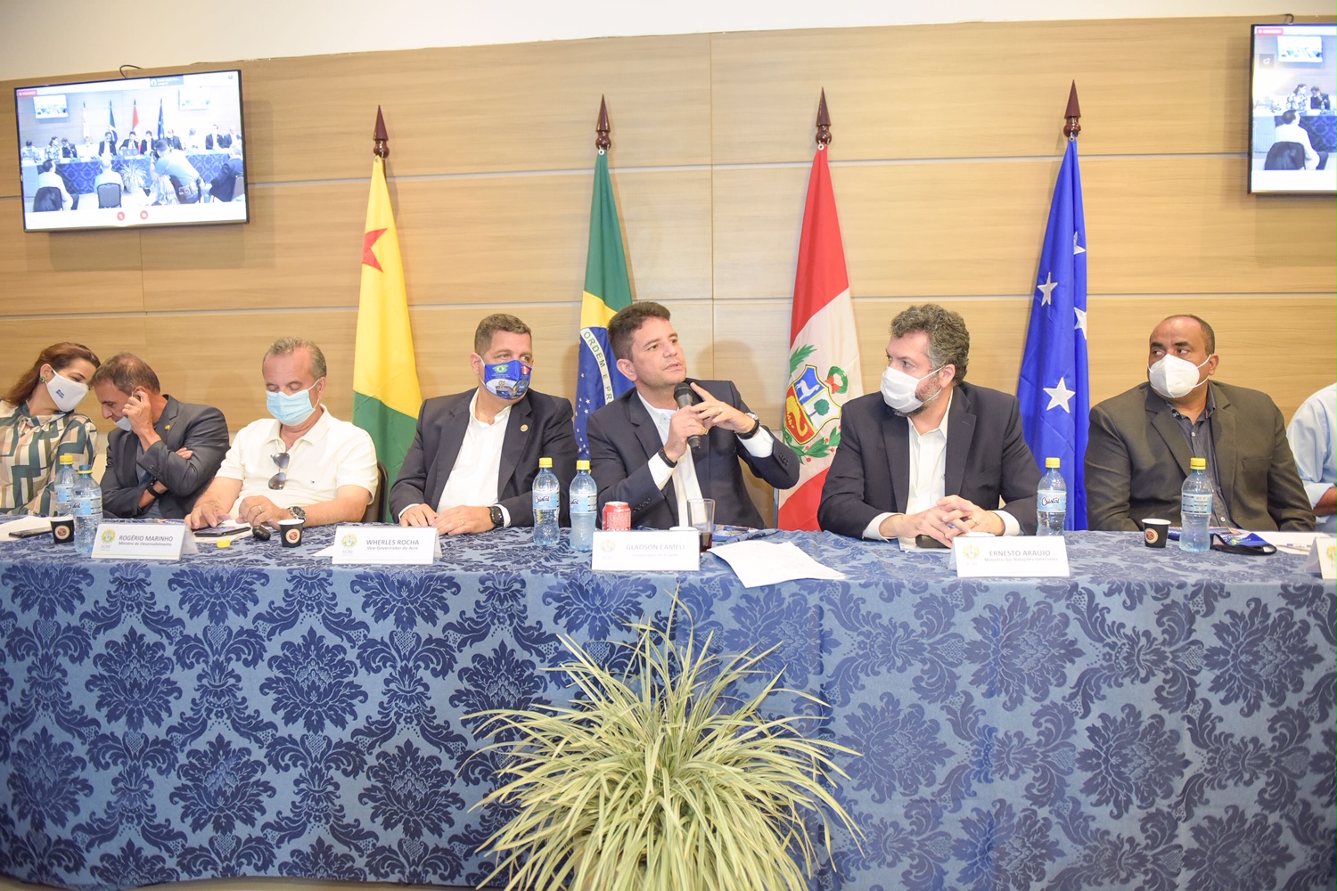 Do lado peruano por videoconferência, o governador de Madre de Dios, Luis Guillermo Hidalgo, parabenizou o governo do Acre por esse projeto e os benefícios que trará para a região dos dois países, mas aproveitou para lembrar que o Brasil é o terceiro maior parceiro comercial do Peru e que a estrada já existente, mesmo com um caminho longo até Lima, precisa de cuidados e medidas alfandegárias.