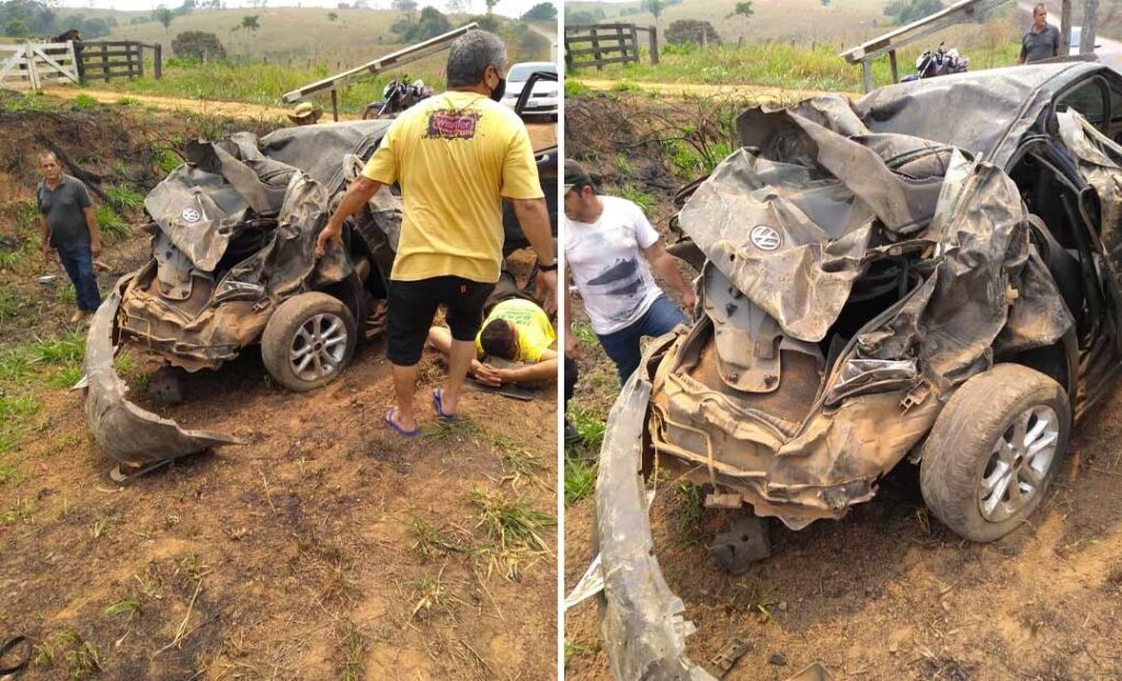 Consta que eles perderam o controle do veículo ao passar em uma área de depressão na camada asfáltica. O Voyage ficou totalmente destruído.