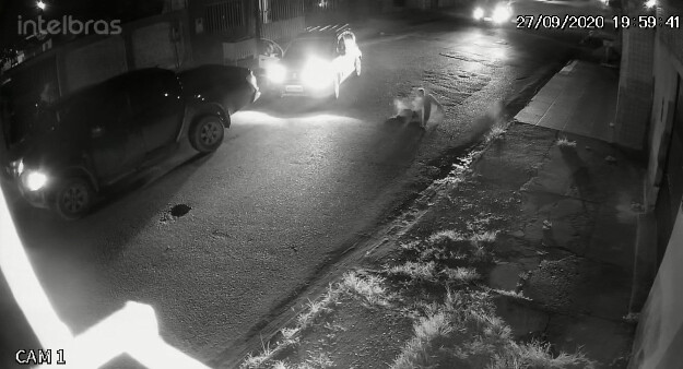 As imagens mostram o momento em que o idoso desfere um golpe de facão e atinge a mão do policial, causando um corte profundo. Para se defender, o cabo atirou cinco vezes em direção do idoso, acertando um tiro no joelho do agressor e um de raspão no tórax.