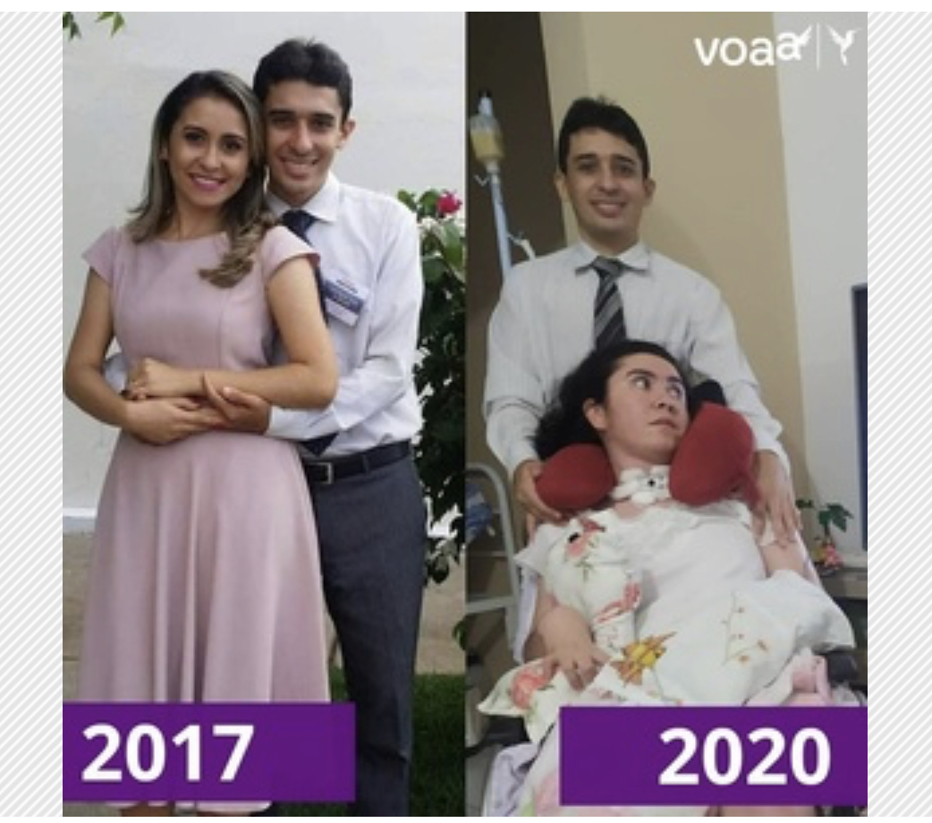 Desde 2018, o motorista de aplicativo David Alexandre, 27, se dedica à esposa Bruna, 26, que ficou em estado vegetativo aos 24 anos. Após sofrer duas paradas cardiorrespiratórias, Bruna ficou com graves sequelas devido à falta de oxigenação: não anda, não fala e precisa de cuidados 24 horas por dia. A seguir, David conta a história do casal.