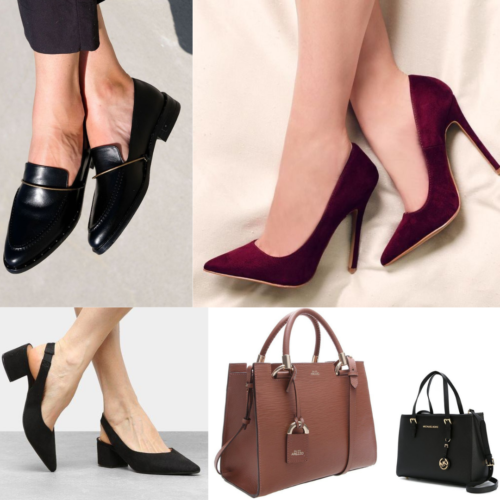 Bolsas mais estruturadas passam uma imagem mais alinhada, sapatos de bico fino como sapatilhas, scarpin e também salto bloco, são ótimos companheiros e os loafers (sapatos com uma pegada masculina) vão te ajudar muito.