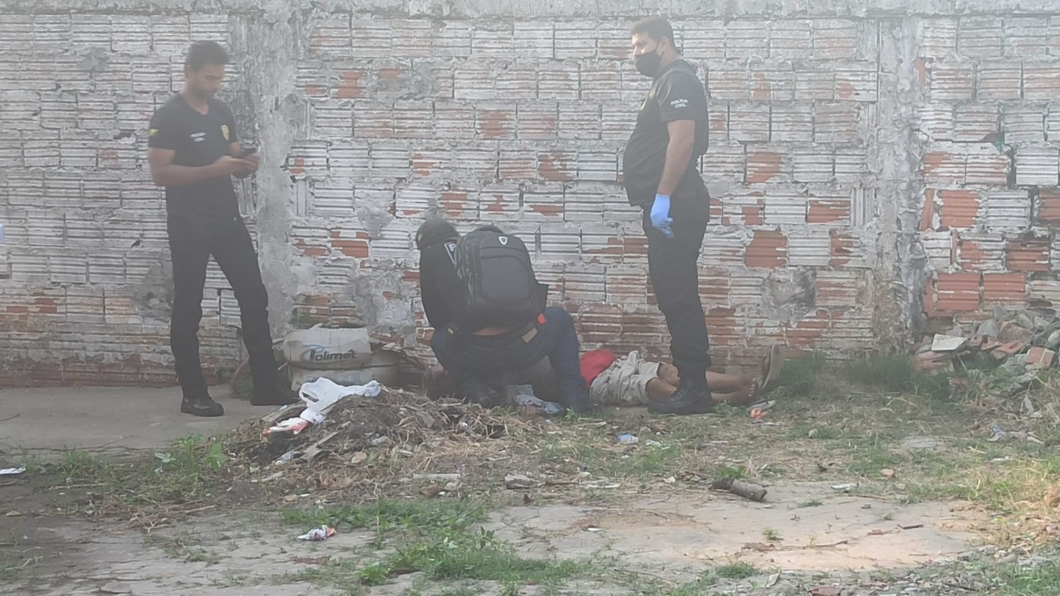 A Polícia Militar foi acionada até ao local e isolou a área para os trabalhos do Perito em criminalística, que constatou que Darcy estava com um afundamento no crânio sofrido pela agressão.