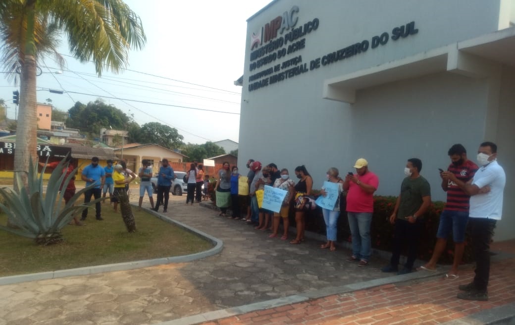 Os moradores do loteamento Jardim Primavera, em Cruzeiro do Sul, realizaram uma manifestação nesta terça-feira, 8, em frente ao Ministério Público, cobrando o retorno das obras de infraestrutura na comunidade.