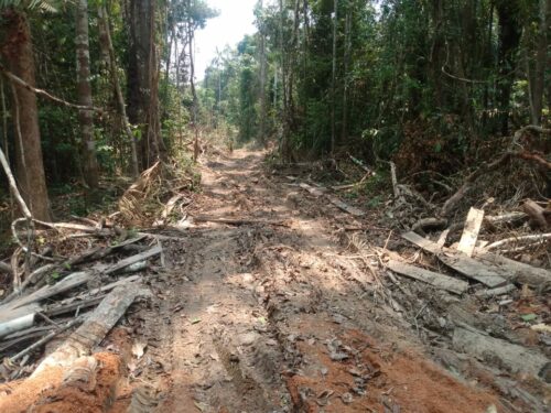A área desmatada corresponde a extensão do ramal de aproximadamente 1,5 quilômetro de distância e 3 metros de largura.