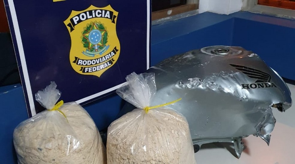 A PRF informou que o motorista apresentou nervosismo ao falar sobre os motivos da viagem. O tanque de combustível continha sinais de que tinha sido modificado. A peça da moto foi desmontada e dentro havia um fundo falso.