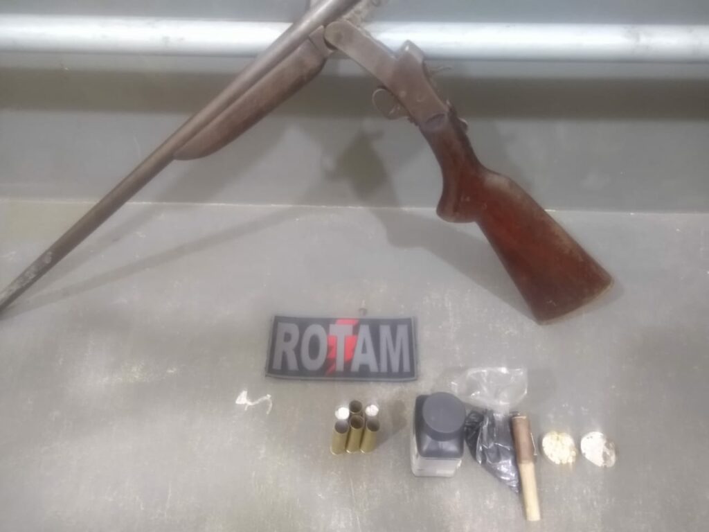 As guarnições da RP e da ROTAM foram ao local e, depois de buscas na localidade, encontraram o suspeito, que estava acompanhado de outro homem, o possui um mandado de prisão em aberto, por ter rompido a tornozeleira eletrônica há alguns meses.