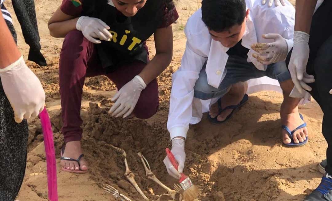 Setembro, 2020 – Estamos em Tarauacá, no Acre, onde um terreno foi isolado após a descoberta de uma ossada humana enterrada. Um crime brutal, que precisa ser elucidado com a ajuda de peritos e dos responsáveis pela investigação: alunos da Escola Estadual Djalma da Cunha Batista. Sim, você leu certo: a polícia não irá interferir neste caso. Pois, o que parece a cena de um assassinato é, na verdade, uma aula. Inspirada na famosa série “CSI”, a professora Tamayra Hanan decidiu levar a investigação criminal para dentro do colégio. E, neste Dia do Biólogo (03/09), vira história com seus estudantes do terceiro ano do Ensino Médio, mostrando que é possível ir muito além das aulas tradicionais para ensinar a matéria.