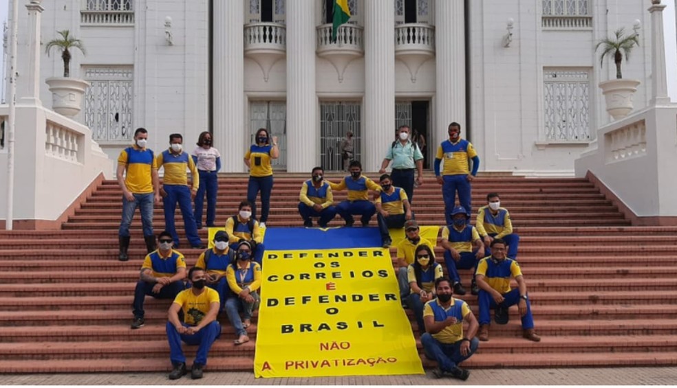 Os servidores da Empresa Brasileira de Correios e Telégrafos realizaram na manhã desta quarta-feira, 9, em frente ao Palácio Rio Branco um ato contra a privatização da estatal.