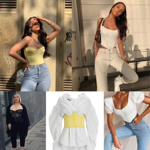 Tenho visto bastante nos últimos dias as gringas usando corsets de maneiras diferentes e resolvi trazer isso para vocês. O corset é uma peça muito sensual e que marca bem a silhueta, era muito utilizado antigamente para tornar a silhueta da mulher mais atraente. Toda vez que algo volta a ser tendência, muito provavelmente voltará com algum toque mais moderno.