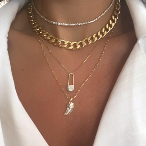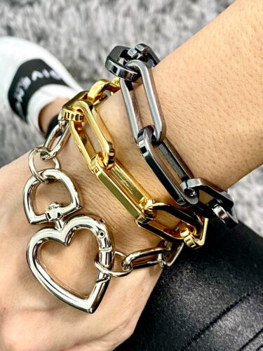 As correntes estão muuuito em alta, em brincos, cordões e pulseiras. Pode investir que esse é sucesso. Acho incrível e dá um super up no look, deixando mais empoderado e muito estiloso.
