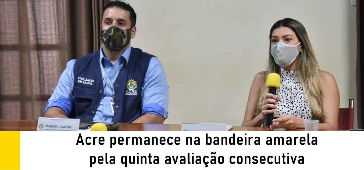 A coletiva de imprensa realizada na tarde desta sexta-feira, 2, pelo governo do Estado, por meio da Secretaria de Estado de Saúde do Acre (Sesacre) e do Comitê de Acompanhamento Especial da Covid-19, revelou que mesmo com melhorias nos indicadores das regionais de saúde, todo o Acre se mantém ainda em Nível de Atenção (Bandeira Amarela) pela quinta avaliação consecutiva.