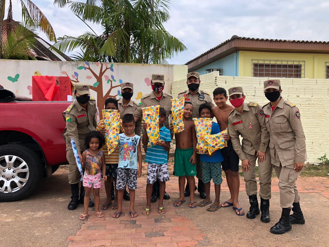 Os brinquedos também foram entregues no abrigo de venezuelanos e indígenas, localizado no bairro Cidade do Povo, pela equipe da Diretoria de Atividades Técnicas e Operacionais da corporação.