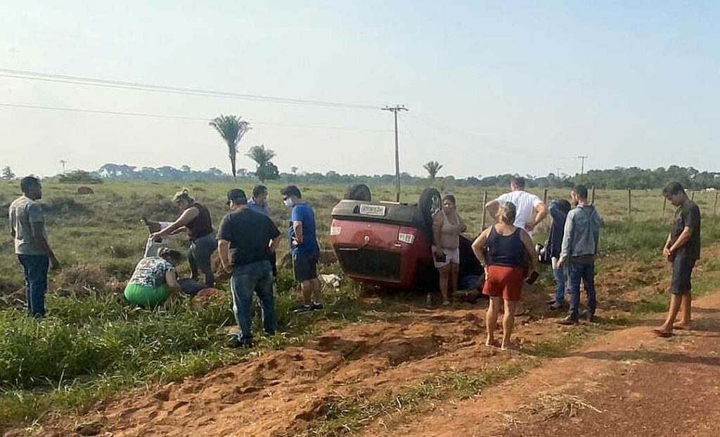 Um carro modelo FIAT Uno, placa MZS 8047 de Rio Branco – AC, perdeu o controle da direção após estourar um dos pneus traseiro e findou capotando e deixando duas pessoas gravemente feridas.