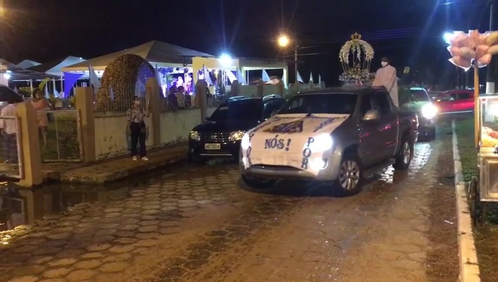 O Pelotão de Trânsito da cidade informou que 450 veículos, cerca de 1,7 mil pessoas, participaram da carreata que saiu na Avenida Mâncio Lima e foi até a paróquia de Nossa Senhora Aparecida, onde ocorreu uma missa campal.