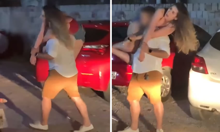 Em um vídeo compartilhado pela jornalista Lília Camargo, a ex-namorada de Ícaro, Hatsue Said, aparece sendo levada nas costas por um rapaz no estacionamento do Tardezinha.