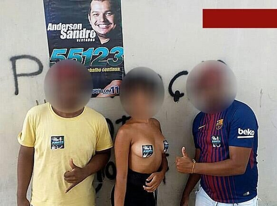 Recentemente, uma mulher resolver colocar adesivos de um candidato ao cargo de vereador para cobrir os seios.