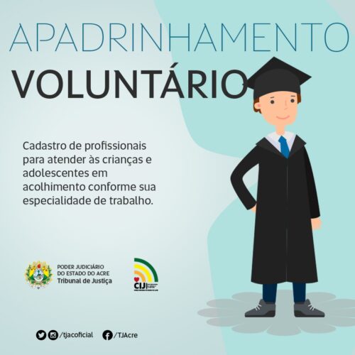 A divulgações de informações sobre o programa está sendo realizada em todas as redes sociais do TJAC. Por fim, a coordenadora explicou como funciona o apadrinhamento voluntário: “muitas dessas crianças que estão em acolhimento não tem oportunidade de fazer uma aula de idioma, um reforço escolar, uma fisioterapia ou um tratamento especializado (pois há crianças com deficiência nas unidades). Então, profissionais que puderem prestar auxílio serão bem-vindos”, concluiu.