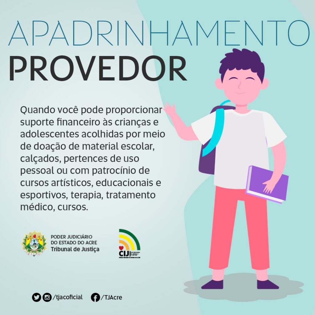 Durante o mês de outubro, quando se comemora o Dia das Crianças, o Tribunal de Justiça do Acre (TJAC) fortalece a divulgação de sua campanha de Apadrinhamento. Desta forma, a Rede de Proteção e a Coordenadoria Estadual da Infância e Juventude (CIJ) reuniram esforços para convidar mais pessoas a se tornarem madrinhas e padrinhos das crianças e adolescentes que estão em casas de acolhimento.