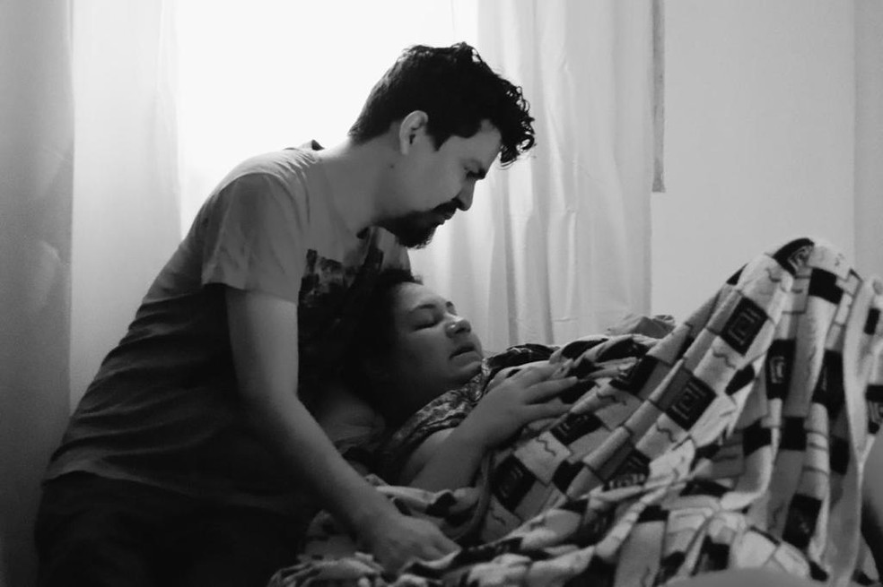 Os dois tentaram ir pro carro para seguirem para a maternidade, mas ela não aguentava mais ficar sentada e foi aí que decidiu ir pra cama esperando que as contrações acalmassem e ela conseguisse sair de casa.