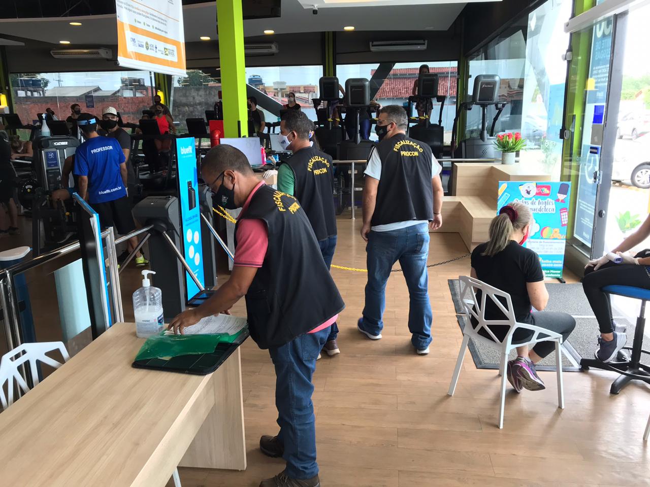 Os fiscais da autarquia também estão observando as medidas adotadas neste momento de pandemia, como disponibilidade de álcool em gel, agendamento de horários de atendimento e a sinalização da capacidade das academias, além de ações obrigatórias, como conter exemplares do CDC para consulta.