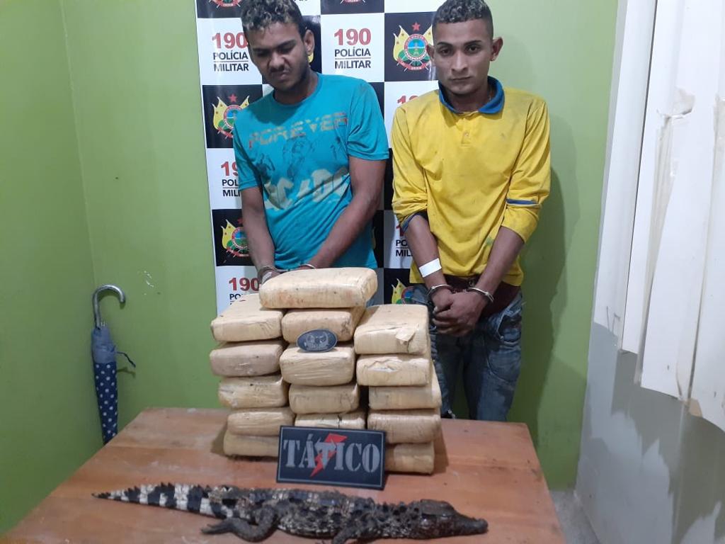 Sem dar trégua ao crime, o Grupo Tático do 7º Batalhão da Polícia Militar prendeu na noite de sexta-feira (16), por volta das 22h20, uma dupla acusada por tráfico de drogas e crime ambiental. Raimundo Nonato da Silva Ferreira, de 19 anos, e Johnatan Dias da Silva , de 21 anos, foram flagrados transportando quase 17 quilos de maconha em uma motocicleta e um jacaré.