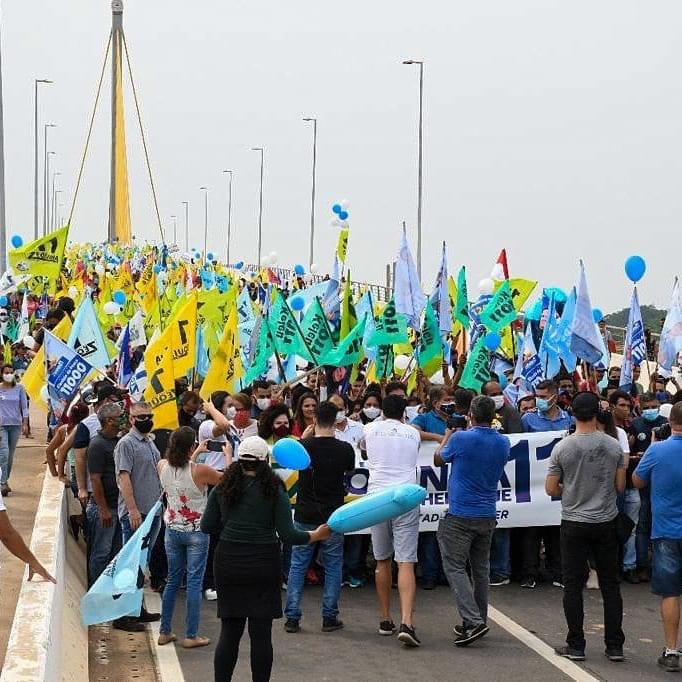 O Corpo de Bombeiros estima que mais de 6 mil pessoas participaram da caminhada realizada na manhã deste sábado,07, em Cruzeiro do Sul, em apoio a candidatura majoritária de Zequinha Lima e Henrique Afonso. O evento reuniu a militância e apoiadores, candidatos a vereadores e as principais lideranças do estado do Acre, contando com a participação do Governador Gladson Cameli, do Deputado Estadual Nicolau Júnior, da Deputada Federal Perpétua Almeida e do Prefeito Clodoaldo Rodrigues.