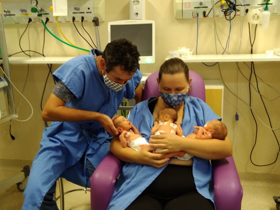 “Por se tratar de uma gestação trigemelar, é bem menos frequente porque é mais comum de gêmeos, então precisa de uma dupla divisão do embrião ou mesmo que um embrião se divida e tenha mais uma gestação, para então formar três embriões”, detalhou a obstetra Andréia Sayaka.