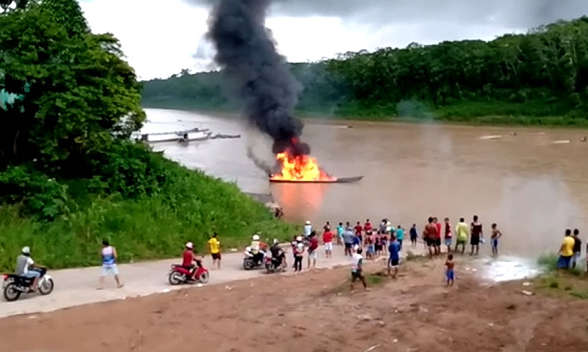 Um barco com combustível pegou fogo no porto do município de Marechal Thaumaturgo no início da tarde desta quinta-feira, 12. A embarcação pertence ao empresário Cleber Pedroza.