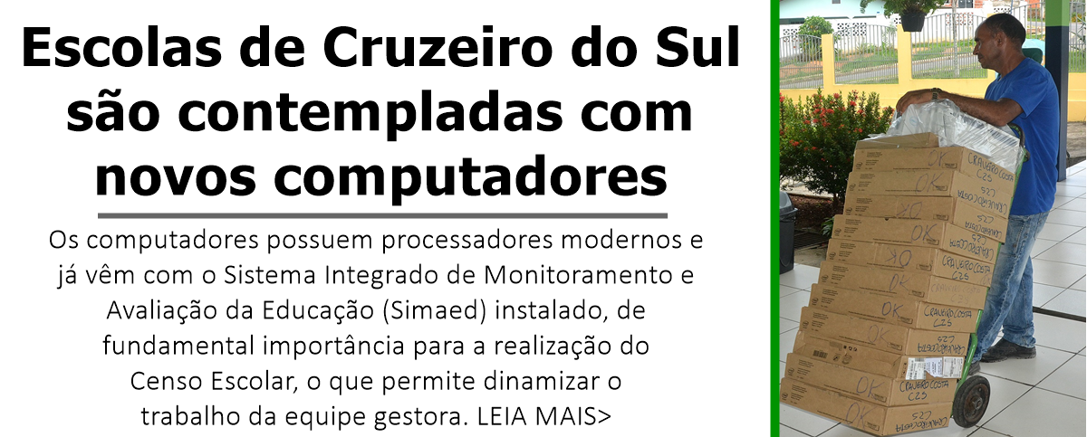 A coordenadora do Núcleo da SEE em Cruzeiro do Sul, Ruth Bernardino, entregou pessoalmente os 10 novos computadores e os 11 notebooks da escola. De acordo com Ruth, os computadores têm a finalidade de melhorar o trabalho das escolas.